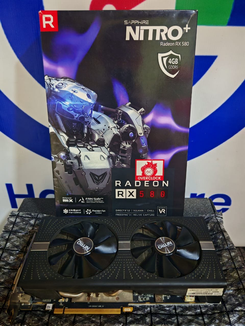 كرت AMD Radeon RX 580 4GB GDDR5 Sapphire Nitro+ يعتمد على معمارية Polaris 20 من AMD، وهي نسخة محسّنة من معمارية Polaris 10 المستخدمة في RX 480. الكرت ده بيوفر أداء قوي للألعاب بدقة 1080p، وبيقدر يتعامل مع الألعاب الحديثة على إعدادات عالية بمعدلات إطارات سلسة (50-80 إطار/ثانية في ألعاب زي GTA V وThe Witcher 3). كمان بيدعم المهام الإبداعية الخفيفة زي تحرير الفيديو والصور، ومناسب لتجربة الواقع الافتراضي (VR) بفضل دعم تقنية AMD LiquidVR.التبريد والتصميم