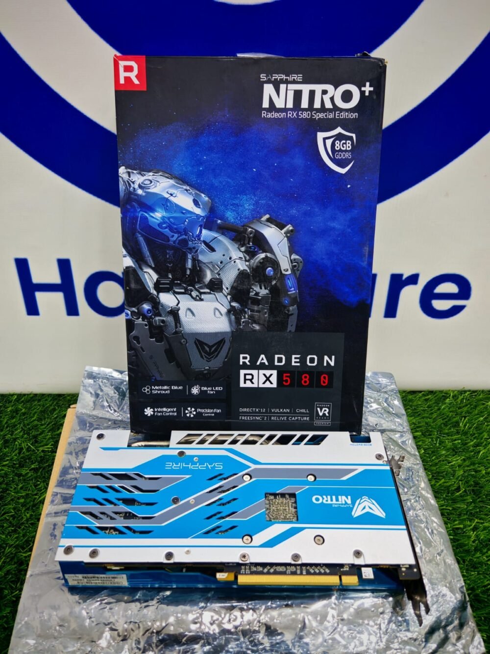الكرت Graphic Card AMD Radeon RX 580 8GB DDR5 Sapphire NITRO+ Special Edition بيستفيد من تقنية تصنيع 14 نانومتر، اللي بتوفر كفاءة طاقة ممتازة مع أداء قوي. الـ2304 نواة تدفق وذاكرة 8 جيجابايت بيخلّوه مثالي للألعاب بدقة 1080p وبعض الألعاب بدقة 1440p، مع دعم المهام الإبداعية زي تحرير الفيديو.التبريد والتصميم