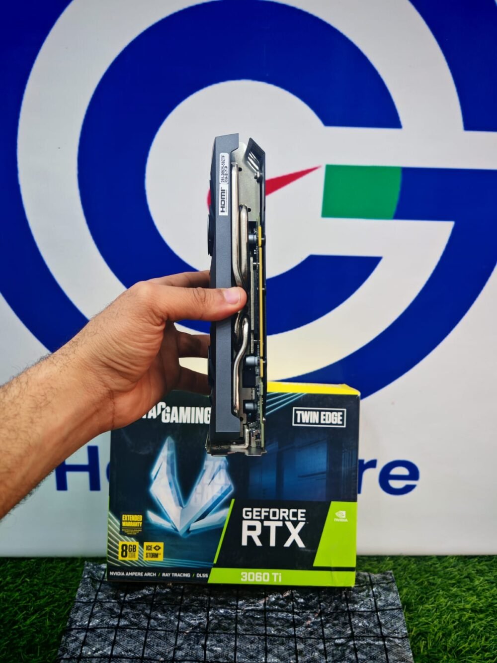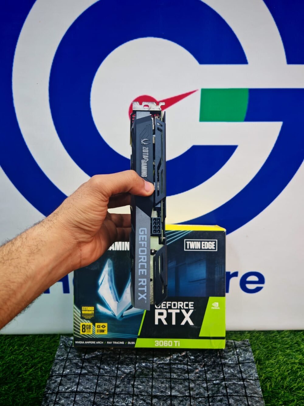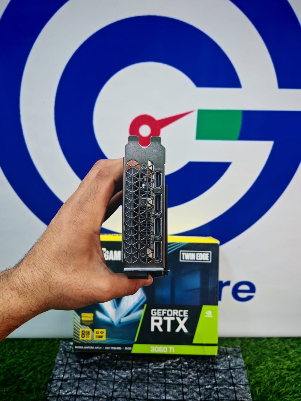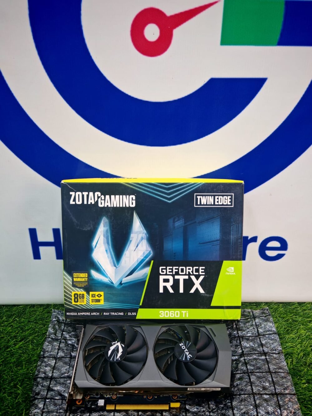 عرض مميز: Graphic Card Nvidia GeForce RTX 3060 Ti 8GB GDDR6 Zotac Gaming Twin Edge Black – متوفر الآن في GC Hardware!Graphic Card Nvidia GeForce RTX 3060 Ti 8GB GDDR6 Zotac Gaming Twin Edge Black: المواصفات التقنية الكاملة من الشركة المصنعةارفع مستوى جهازك مع Graphic Card Nvidia GeForce RTX 3060 Ti 8GB GDDR6 Zotac Gaming Twin Edge Black، الكرت القوي المصمم للأداء الممتاز في دقة 1080p و1440p مع إطارات عالية جداً وسلسة، ودعم كامل لتقنيات Ray Tracing وDLSS من الجيل الثاني. هذا الإصدار مستعمل بحالة ممتازة ويأتي مع ضمان GC Hardware. حسب المواصفات الرسمية من Zotac وNVIDIA:GPU Chip: NVIDIA GeForce RTX 3060 Ti (Ampere Architecture)