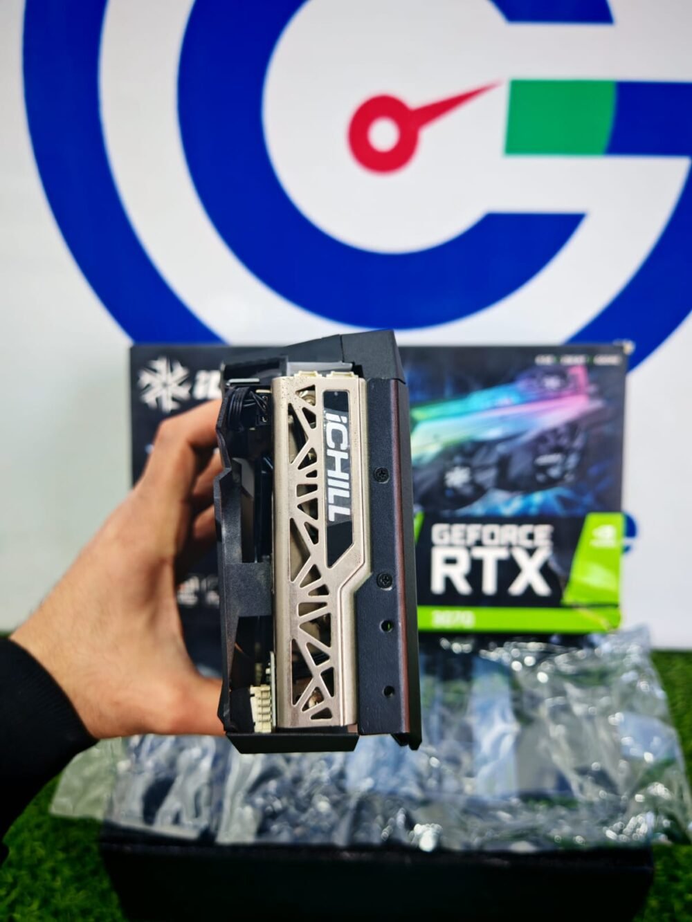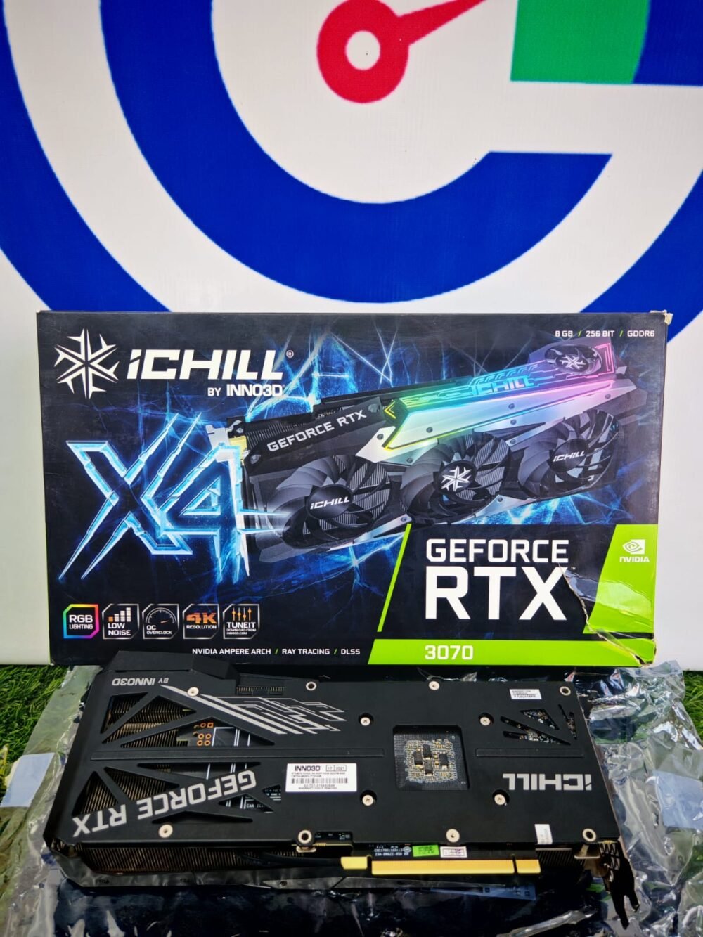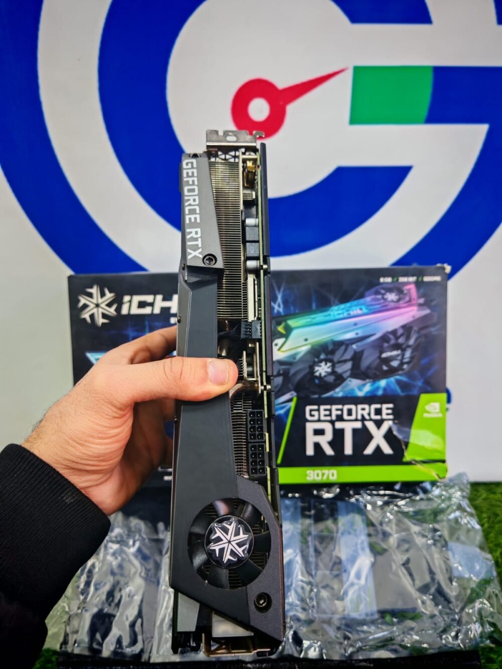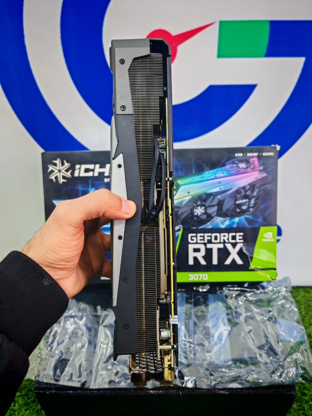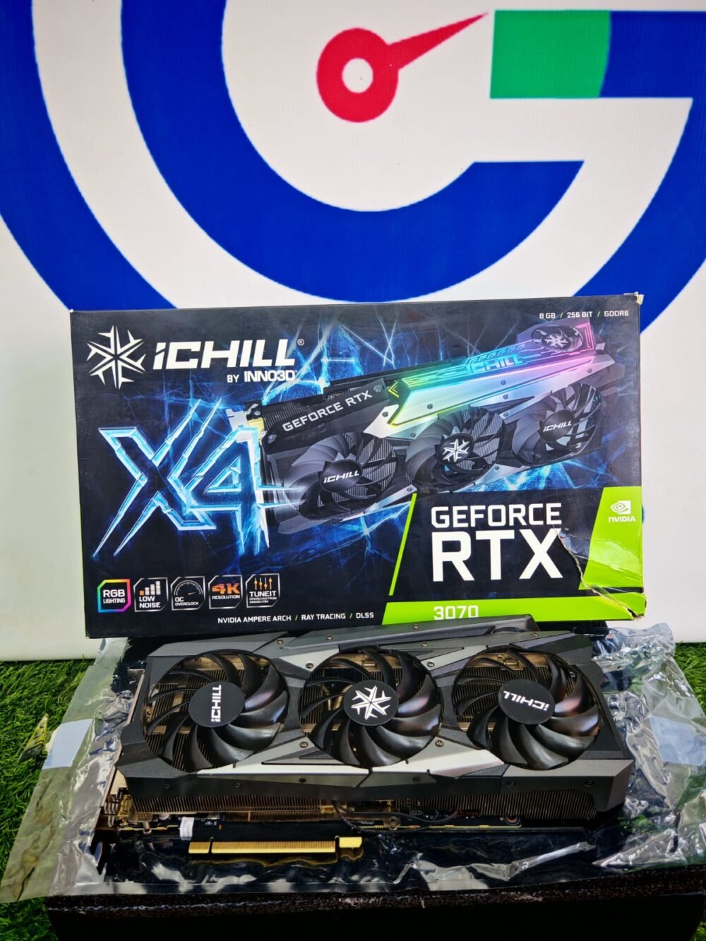 عرض مميز: Graphic Card Nvidia GeForce RTX 3070 8GB GDDR6 Inno3D iChiLL X4 – متوفر الآن في GC Hardware!Graphic Card Nvidia GeForce RTX 3070 8GB GDDR6 Inno3D iChiLL X4: المواصفات التقنية الكاملة من الشركة المصنعةارفع مستوى جهازك مع Graphic Card Nvidia GeForce RTX 3070 8GB GDDR6 Inno3D iChiLL X4، الكرت القوي المصمم للأداء الاستثنائي في دقة 1440p وحتى 4K مع إطارات عالية وسلسة، ودعم كامل لتقنيات Ray Tracing وDLSS من الجيل الثاني. هذا الإصدار مستعمل بحالة ممتازة ويأتي مع ضمان GC Hardware. حسب المواصفات الرسمية من Inno3D وNVIDIA:GPU Chip: NVIDIA GeForce RTX 3070 (Ampere Architecture)