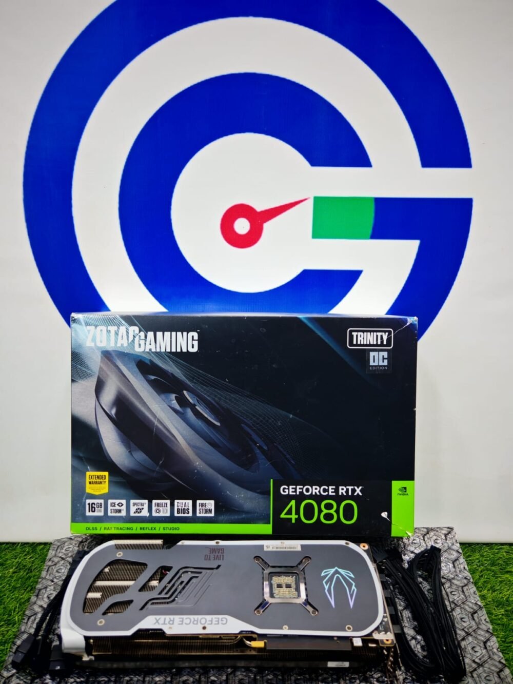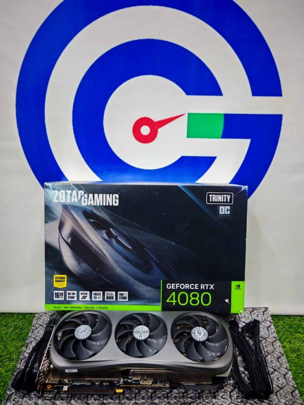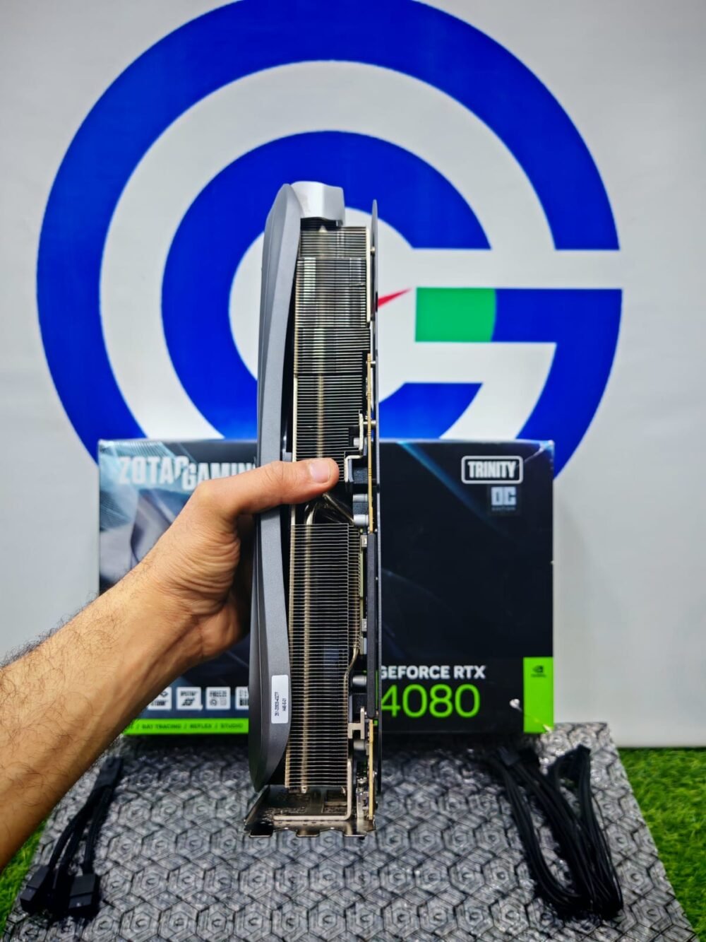 Graphic Card Nvidia GeForce RTX 4080 16GB GDDR6X Zotac Gaming Trinity OC Black: ضمان GC Hardwareهذا المنتج مستعمل (تم اختباره وفحصه بدقة قبل البيع).