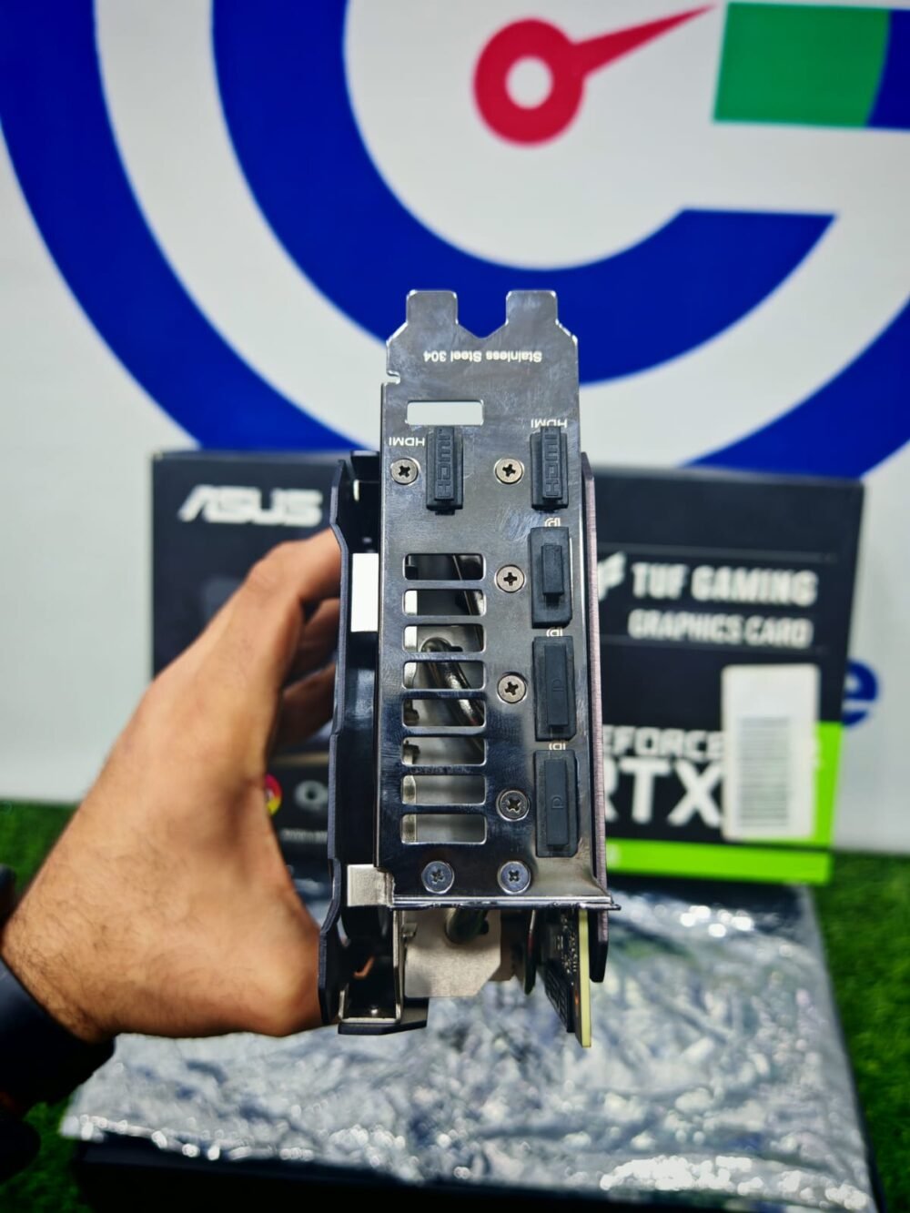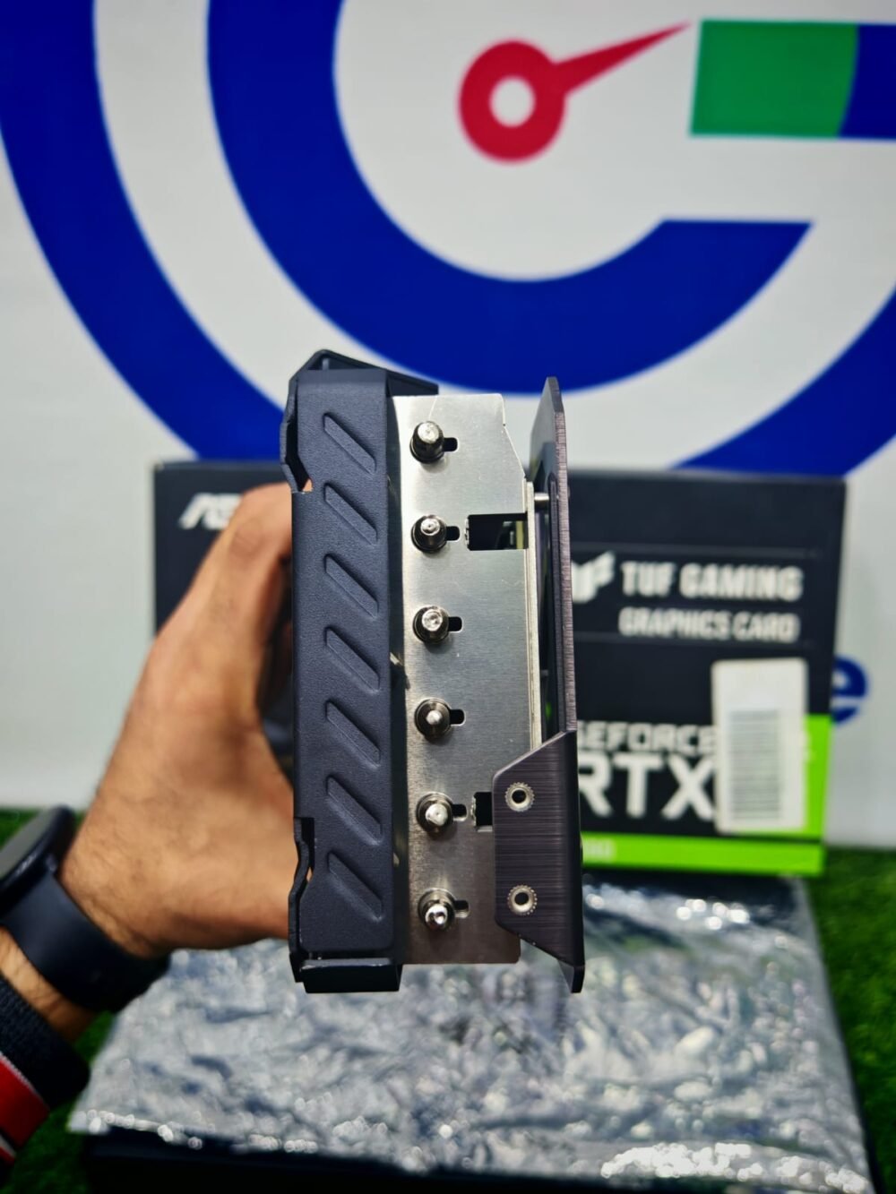 يحافظ نظام التبريد TUF Gaming على درجات حرارة منخفضة (30-35 درجة مئوية في الخمول، و64-70 درجة تحت الحمل الكامل). التصميم القوي (300 × 140 × 52 مم، 2.7-slot) متين وأنيق، مما يجعله مثاليًا لمحبي التخصيص.الاتصال والمخارج