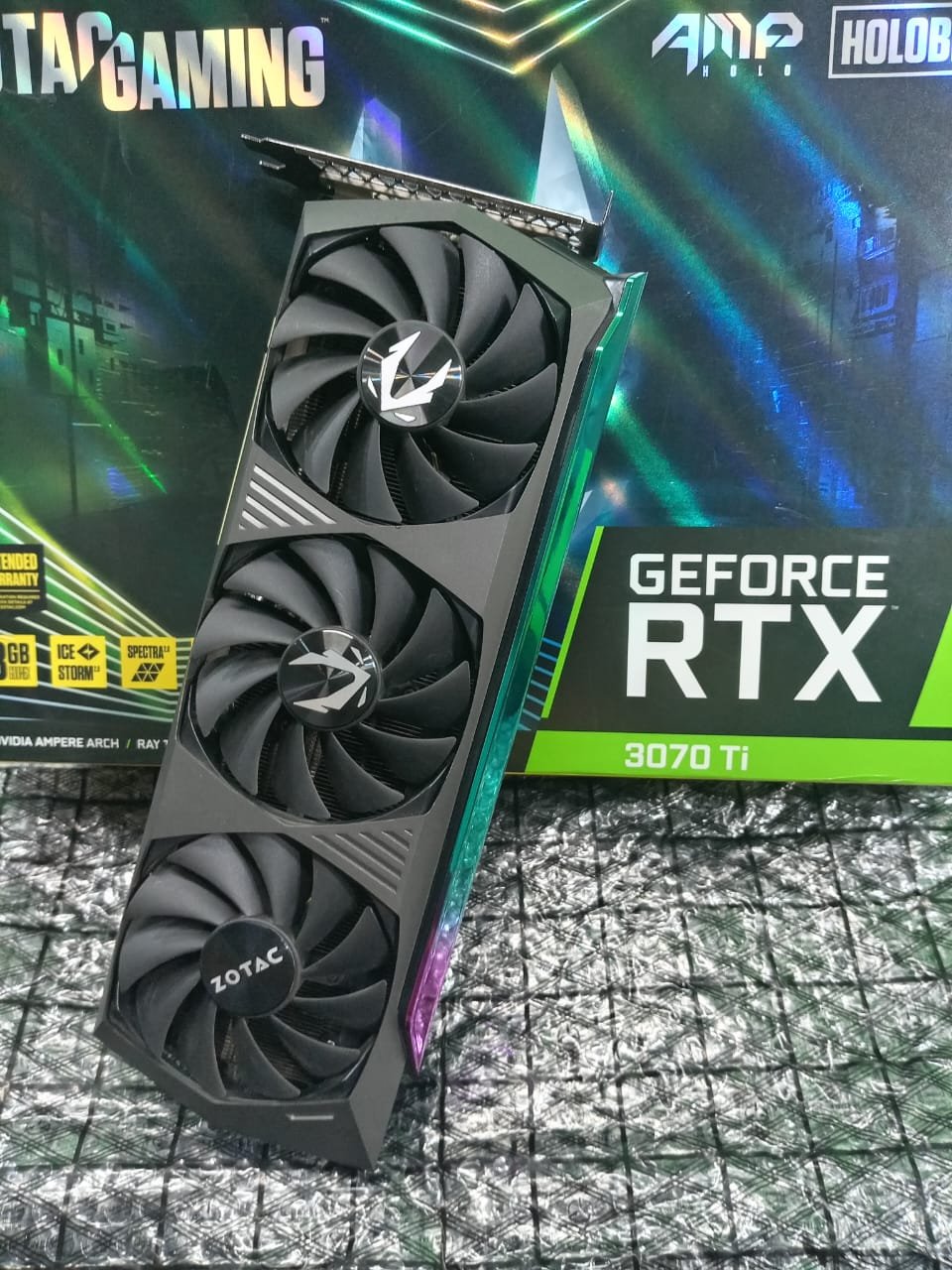 لماذا تختار Graphic Card Nvidia GeForce RTX 3070 Ti 8GB GDDR6X Zotac AMP Holo؟يجمع الكرت بين الأداء الاستثنائي، نظام التبريد IceStorm 2.0 الفعال مع RGB، وتصميم HoloBlack أنيق ومتين. مثالي للجيمرز والمبدعين مع دعم Ray Tracing الثاني الجيل وDLSS، ويأتي مع ضمان GC Hardware لمدة 6 أشهر ضد عيوب الصناعة (باستثناء الكسر، الحرق، أو أعطال الطاقة). بسعر تنافسي (حوالي 12000-15000 جنيه مصري حسب السوق المستعمل)، يعد خيارًا اقتصاديًا للأداء العالي في الجيل الحديث.التحقق من تفاصيل المنتجزوروا صفحة المنتج على موقع Zotac: Zotac GeForce RTX 3070 Ti AMP Holo.