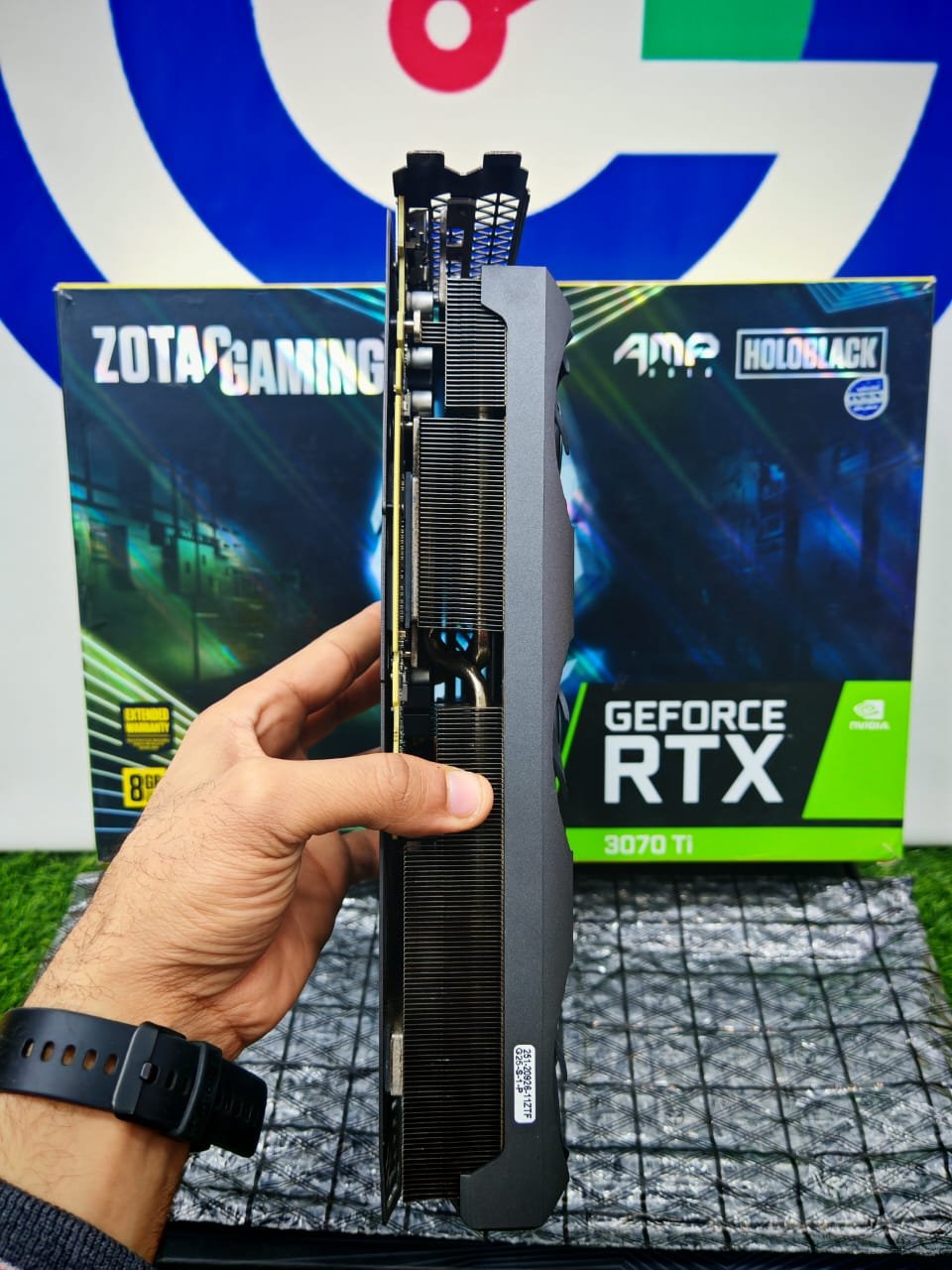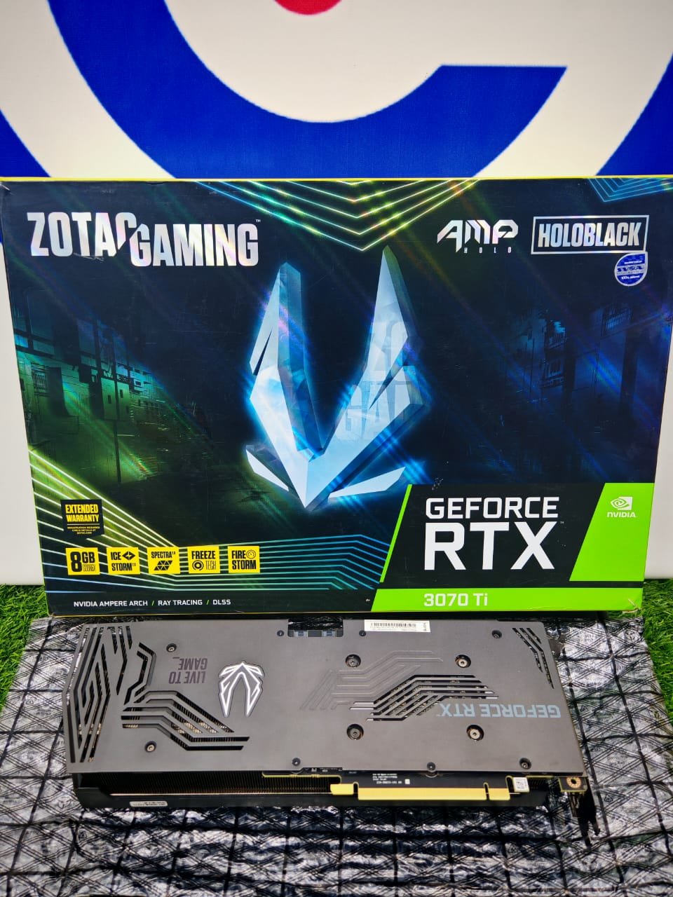 Graphic Card Nvidia GeForce RTX 3070 Ti 8GB GDDR6X Zotac AMP Holo: أداء مذهل للجيمرز في مصرإذا كنت جيمرًا في مصر تبحث عن بطاقة رسوميات توفر أداءً استثنائيًا للألعاب بدقة 1440p و4K في بعض الألعاب، مع إمكانيات قوية للألعاب الحديثة والمهام الإبداعية المتقدمة، فإن Graphic Card Nvidia GeForce RTX 3070 Ti 8GB GDDR6X Zotac AMP Holo هو خيار مثالي. من إنتاج Zotac، الشركة الرائدة في مكونات الألعاب، تعتمد هذه البطاقة على معمارية NVIDIA Ampere. مزودة بنظام تبريد IceStorm 2.0 المتقدم مع ثلاث مراوح وذاكرة 8 جيجابايت GDDR6X، تدعم تقنيات Ray Tracing الثاني الجيل، DLSS، وNVIDIA Reflex، مما يضمن تجربة لعب سلسة بمعدلات إطارات عالية وأداءً قويًا للمهام الإبداعية مثل تحرير الفيديو 4K والتصميم ثلاثي الأبعاد. على منصة GC Hardware، نقدم لكم هذا الكرت مع ضمان لمدة 6 أشهر ضد عيوب الصناعة (باستثناء الكسر، الحرق، أو أعطال الطاقة)، وسنوضح لماذا يعد هذا المنتج إضافة مميزة لنظامك.المواصفات الأساسية
